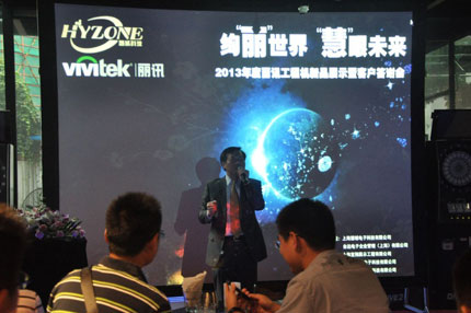 由Vivitek麗訊主辦,上海慧域電子科技有限公司(以下簡稱上海慧域)承辦的2013年工程機新品展示暨客戶答謝會,于6月27日在上海盛大召開。上海慧域各地客戶、媒體代表體等200余人參加會議,大家共同體驗了麗訊工程產品互動投影技術的趣味性和行業優勢。目睹了麗訊頂級工程投影機D8900攜眾多新品帶來的各類經典工程應用案例,體會到了麗訊強大的產品實力和品牌魅力。