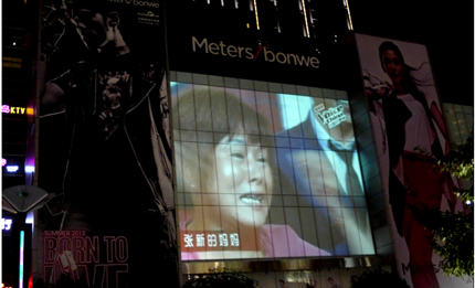 2013年夏季,重慶觀音橋商圈的市民發現美特斯邦威大廈的外墻,沒有改變結構,沒有安裝LED等設備,卻瞬間變為一個巨大而清晰的熒幕,播放著《中國好聲音》、《新聞在線》、體育等電視節目和商業廣告,畫面流暢清晰,周圍群眾紛紛駐足觀看。有的朋友都驚呼:“這簡直的就是魔術啊,從來沒見過這么大,這么清楚的電視,現場感好強呀,看足球比賽特別帶勁。”為此,小編做了一番探訪,發現原來是Vivitek麗訊實施的戶外長期安裝的外墻投影秀,采用的是其高端工程機D8900,她開拓了一個全新的商業廣告模式。