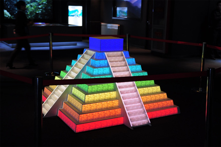 Vivitek麗訊D5000是承載外墻投影,打造祭臺場景的主要硬件。其亮度達到5200流明,對比度為2500:1,配以三種可選鏡頭(短焦、標準、長焦鏡頭)為用戶在不同環境下提供了靈活的解決方案。另外,D5000還采用第三代“亮麗彩輪”技術,鏡頭采用中置設計,在鏡頭上部設計了鏡頭移位調節旋鈕,可對畫面進行水平或垂直移動,方便用戶在安裝時的調試。這些貼心的設計都彰顯了Vivitek麗訊人性化的產品設計理念。同時,Vivitek麗訊D5000還采用了極致色彩技術,令光電轉換效率和色彩還原更加出眾。