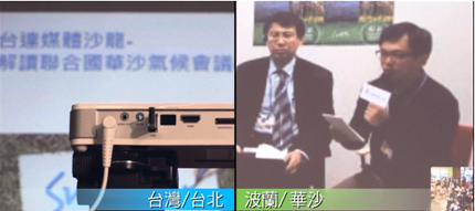 影片中有點靦腆又木納的男主角扮演者其實是臺達基金會的一名工作人員,而整個故事更是他實際工作的真實寫照。去年年底,他代表臺達基金會前往波蘭華沙參加聯合國政府間氣候變遷委員會,并參與了基金會在臺北召開的記者會。由于整個畫面提前已經編寫在了電影的腳本中,因此其整趟行程中都安排了專職攝影師貼身記錄,采集到了最為真實的畫面,真可說是一部小制作大成本的影片。