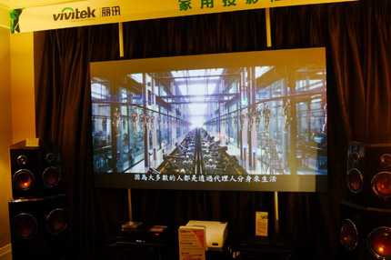 2014展會規模是歷屆展會中最為龐大的。占據了100多個房間和近50個大功能廳。而作為全球投影領先品牌,并且在家用領域中較有建樹的Vivitek麗訊也首次亮相現場,并與老牌音響品牌獅龍進行了品牌合作,在錦江飯店錦楠樓展點進行了展示。