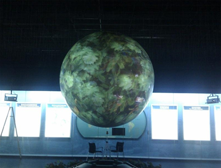 在外球幕投影中,觀眾們可以看到一個地球般的圓球扮演了投影幕的角色,上面展示常州的四季風光,并有“常州歡迎您”等字樣滾動播放,頗受歡迎。