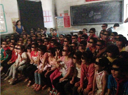4200流明的高亮度、10000:1的高對比度、實現1080P畫面,以及支持主動式3D DLP-Link功能、藍光3D等杰出技術,分別在兩個學校內搭建起了臨時校園觀影室,組織學校的孩子們開展了3場觀影活動。