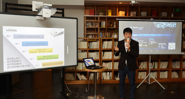 此次Vivitek(麗訊)“如影隨投,商機無線”的商教新品品鑒會選擇在北京字里行間書店舉行,該書店緊鄰孔子學院,雖地處鬧市卻環境清幽,文化氣息濃郁,更加契合教育和商務相融合的主題,體現Vivitek(麗訊)的獨具匠心。由于品鑒會的機型是商教投影機,因此環節和展示都契合了互動、便捷、自由等理念。首先登場的是D755WTIR,這是Vivitek(麗訊)最新推出的一款短焦互動教育投影機,它不僅保留了前作D755WTi“脫離白板”、“雙筆同時書寫”等眾多實用性很強的互動功能,在書寫方面更是再次突破陳規,加入全新智能化手指觸控功能;D755WTIR延續了D755系列的超短焦功能,配備了反射式超短焦鏡頭,擁有0.35:1的超短距離投射比,60厘米即可輕松投射出80英寸的大畫面,打破了教室空間局限,使得多媒體教學在空間小、人數少的環境中依然可以順利進行。 |