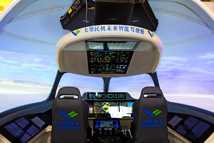 “大型民用飛機未來智能駕駛艙”由3臺Vivitek(麗訊)DU8090Z激光投影機和其他設備組成