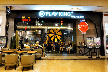 PlayKing餐廳在空間上呈現(xiàn)出濃重的歐式工業(yè)風(fēng)——開(kāi)放式廚房設(shè)計(jì)成旅行房車的造型,門口停放的重型機(jī)車、店內(nèi)懸吊的發(fā)動(dòng)機(jī)、墻上的風(fēng)機(jī)扇葉,還有震撼的3D沉浸式投影……這些元素帶給每一位顧客與眾不同的畫面感和體驗(yàn)感,因此深得年輕、時(shí)尚消費(fèi)群體的喜愛(ài)。