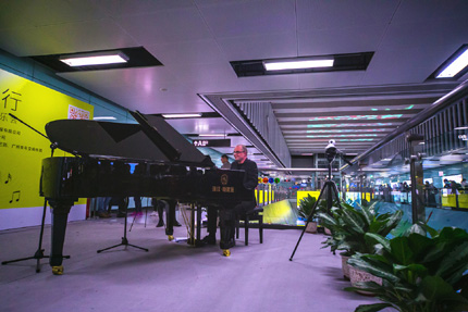 市民在地鐵站可以享受專業音樂演奏和隨節奏不斷變化的炫目影像