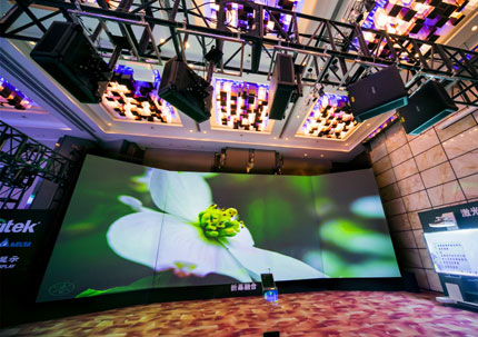 5臺6000流明激光工程投影機通過吊裝融合打造的穹頂解決方案
