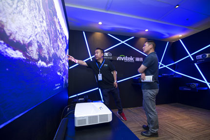 Vivitek(麗訊)在此次CIT2017上展示了最新的4K家用投影機HK2288、家用超短焦激光投影機DH765Z-UST,以及半短焦家用高清投影機DH559ST,并搭配甲譜真影院幕布等相關設備。精彩逼真的方案展示和豐富齊全的家用投影產品讓觀眾可以身臨其境感受投影的魅力與震撼。