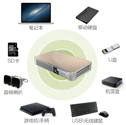 在正常環境中可輕松打造100寸超大畫面,支持DLP-LINK主動式3D技術,并同時引入藍牙和MHL連接功能,可與智能手機、平板電腦、藍牙音箱等設備輕松連接。