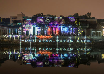 Vivitek(麗訊)在2016年廣州燈光節(jié)分會(huì)場(chǎng)沙灣古鎮(zhèn)打造了《夢(mèng)田沙灣》3D投影秀