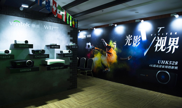 Vivitek(麗訊)在本次CIT2018的展臺風(fēng)格獨特鮮明,以目前人氣最高的世界杯為主題,采用影吧機型HP1601F、超短焦激光家用投影機DH765Z-UST和4K家用投影機UHK528,分別打造了“激情足球Bar”、“歡愉時刻”、“4K發(fā)燒領(lǐng)域”三組不同風(fēng)格元素的家庭影院,并搭配甲譜真影院幕布等相關(guān)設(shè)備。精彩逼真的方案展示和豐富齊全的家用投影產(chǎn)品,讓觀眾可以邊享受世界杯帶來的激情與狂歡,邊身臨其境感受投影的魅力與震撼。
