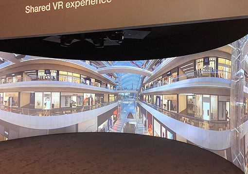 本次展會的重頭展項就是“共享VR沉浸體驗”項目,3臺12000流明4K超高分辨率CB-L12000Q