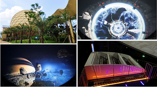 當你來到超大型太空穹頂之下的“星際穿越”特效影院時,游客可以像玩游戲一樣地觀賞電影。NEC雙色激光投影設備,具有真正意義上的4K分辨率,可實現4096