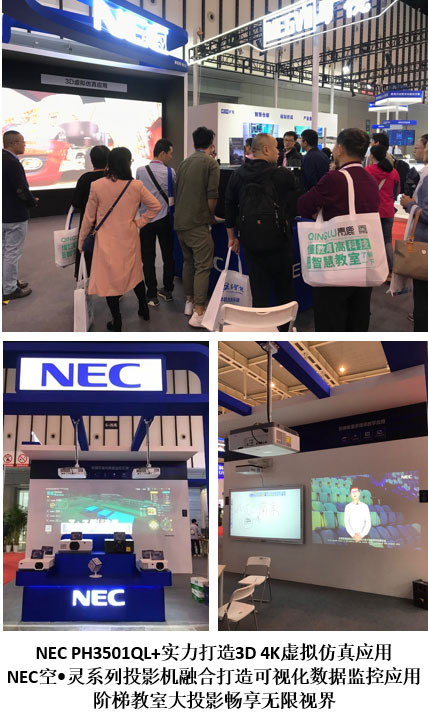 [投影之窗消息] 2019年11月1日,由中國高等教育學會主辦,江蘇省高等教育學會等單位承辦的第54屆中國高等教育博覽會在南京國際博覽中心隆重舉行。NEC作為顯示產品王牌企業,深耕行業40年,沉淀了深厚的產品技術和實力,擁有業界最全投影機產品線。在教育投影應用中,NEC更是不斷探索,將新技術、新光源應用到教育投影領域之中,解決教育投影應用難題,推動現代化教育向前發展。此次展會,NEC攜顯示產品家族集體亮相,打造了六大教學顯示應用,吸引觀眾紛紛駐足,NEC展位成了當之無愧的人流聚集地。