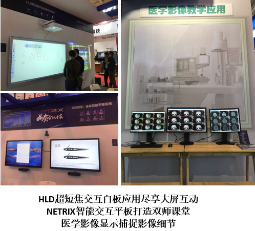 除了以上三大顯示應用備受關注外,NEC在現場打造的HLD超短焦交互白板應用、階梯教室多媒體應用、醫學影像教學應用同樣引人注目。HLD超短焦交互白板應用由HLD高色域教育投影機NEC
