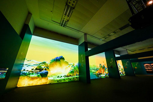 《千里江山圖》堪稱青綠山水畫作中的典范,巨作在用色上先以赭石鋪底,然后上石青石綠,層層疊加。基于此,本次展覽選用的PX753UL經(jīng)過色彩獨(dú)立校正技術(shù),真實(shí)還原厚重絢麗的色彩效果,質(zhì)感凝重,與整幅畫作的墨青、墨綠基調(diào)渾然一體,鮮艷而不媚俗。