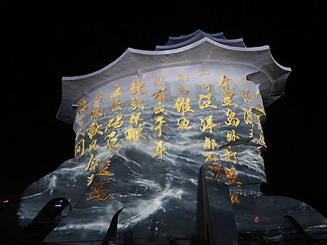 碧螺塔塔面投射任務由NEC 4萬流明4K激光工程投影PH3501QL+擔當,通過兩兩疊加的方式,投影在21米高巨大的碧螺塔上呈現出裸眼3D Mapping效果... >>