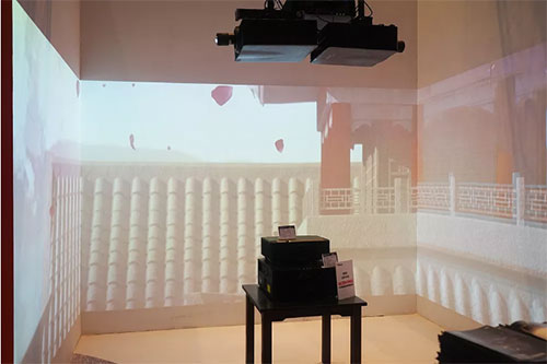 重頭戲“暢音戲樓,九九大慶”展項由兩臺ZU1050創(chuàng)造弧形沉浸影像,無需額外配備融合器,創(chuàng)造一體感出色的超寬幅畫面。