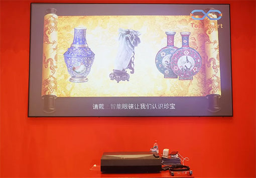 珍寶再現(xiàn)”展項,激光電視P1可以貼墻投影4K細(xì)膩畫面,通過增強現(xiàn)實技術(shù),實時呈現(xiàn)注釋,應(yīng)用前景廣闊。
