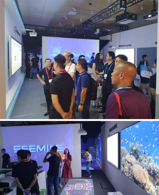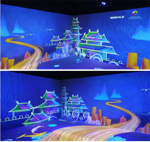 視美樂在展會現(xiàn)場用激光投影為孩子們開辟了一方小天地,游魚和飛鳥只在一線之隔,畫面無限延伸,仿佛在邀請著大家共赴一趟充滿想象力的視覺之旅。