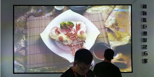 展會現(xiàn)場,視美樂展示了180寸的巨幕投影效果。色彩準(zhǔn)確、明艷;畫面通透、光線感強烈;聚焦清晰、細(xì)節(jié)豐富。