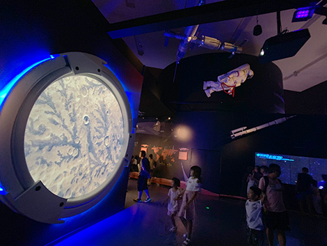 近1,600平方米的空間深邃而夢幻,擁有星漢燦爛、日月之行、遙望蒼穹、起航時代、遨游太陽系、星海漫游等六個部分,通過沉浸式多媒體演示、互動方案、精美模型及文物景觀,為觀眾呈現震撼人心的宇宙之美。