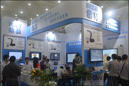 本次展會鼎易展示了其多款核心產品,有壁掛式事物展臺、新一代視頻展臺、多媒體中控系統等,其新一代多功能視頻展臺以其高清、高效、便攜、節能、環保等決定性優勢受到教育市場客戶的歡迎,同時,鼎易科技的數影儀產品也以其強大的功能優勢受到教育工作者的親睞,數影儀是新一代多功能文檔拍攝儀和視頻展臺,是你高速翻拍和管理文檔的絕佳產品,也是高速高分辨率實物展示的理想設備。運用于高清課件制作、高清實物展示、高清對比教學、高速影視頻錄制等方面。